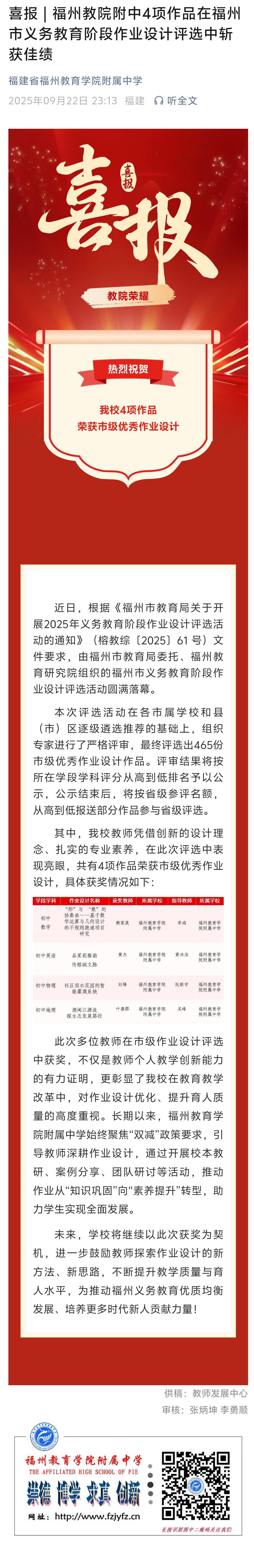 喜报 福州教院附中4项作品在福州市义务教育阶段作业设计评选中斩获佳绩
